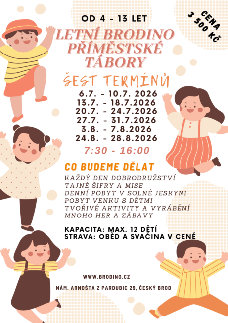 Léto plné her, dobrodružství, tvoření a pohybu v přátelském prostředí. Každý den nové zážitky, zábavné aktivity a radostné objevování pro děti od 4 do 13 let.