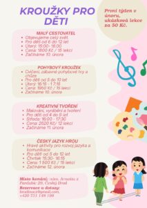 Malý cestovatel je ideální kroužek pro děti, které jsou zvídavé, rády objevují nové věci a chtějí poznávat svět kolem sebe. Společně se vydáme na cestu do různých zemí, budeme si povídat o kulturách, zvycích, přírodě i zajímavostech z celého světa. Děti si rozvinou fantazii, slovní zásobu a přirozenou chuť učit se novým věcem hravou a zábavnou formou.